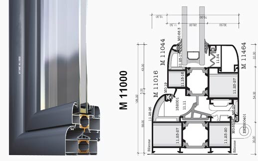 Među najmodernijim sistemima profila sa termičkim prekidom za prozore izdvaja se najpopularnija ALUMIL-ova serija na domaćem tržištu. Besprekorno izrađena do poslednjeg detalja, serija 11000, jedinstveno elegantna i fleksibilna sa modernim i trajnim dizajnom. Prateći evropske kriterijume kvaliteta, pokriva sadašnje i buduće načine rada vrata i prozora. Zasniva se na krilu širine 78mm i termičkim prekidom od poliamida širine 24mm. Odlična zvučna izolacija (do 52dB) Dostupno u raznim bojama i dezenima.